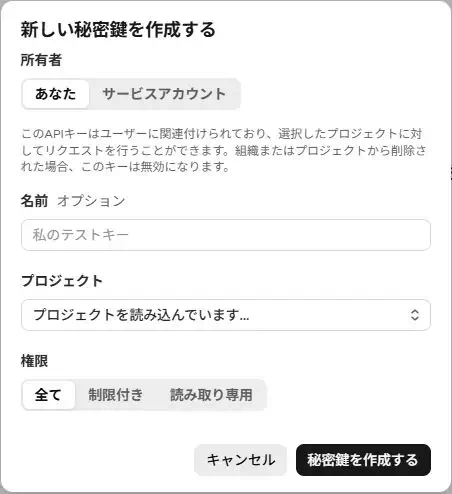 - 名前はこのキーの名前。空欄でも問題ありません。