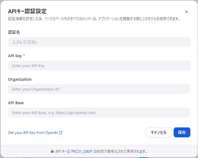 聞きなれない言葉ですが、Difyが “外部の生成AI” と会話するための「接続のルール」と「鍵」を理解できればOKです。