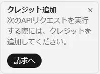 APIキーが取得できたら、それを利用するためのクレジットを購入しましょう。