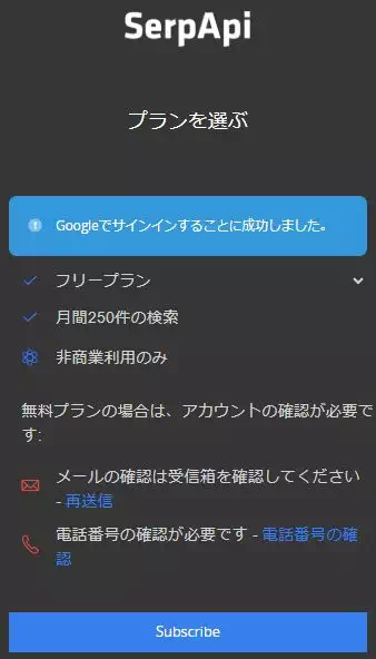メールアドレスと電話番号の確認後、Subscribeをクリックしましょう。