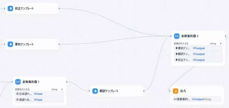 こちらは変数集約器ノードを用いて出力結果をまとめ、一つのテンプレートノードで対応させます。
