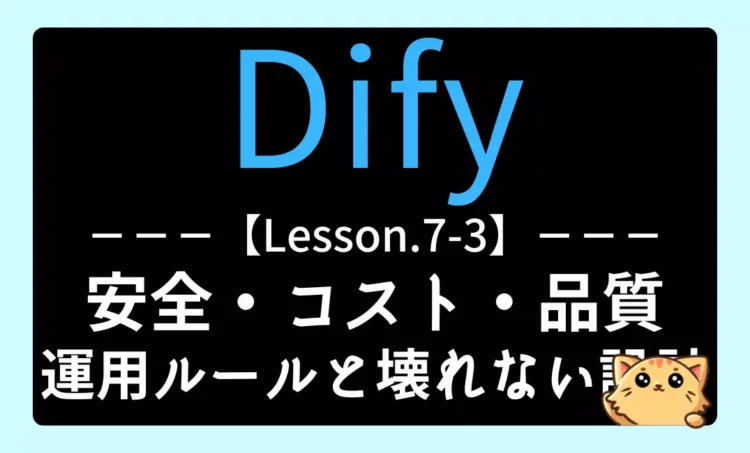 【Dify】Lesson7-3:安全・コスト・品質の守り方|運用ルールと壊れない設計